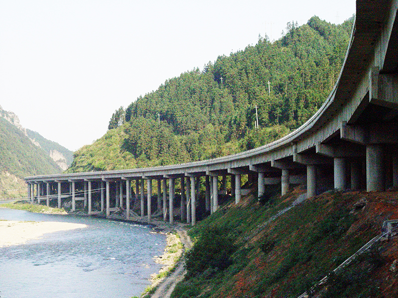 湖南省邵陽-懷化高速公路,公司承建土建工程6.32km,含洞口塘大橋(25*30 36 26 30 3*40 6*30簡(jiǎn)支連續(xù)T梁)和洞口塘隧道一座。2005年建成。